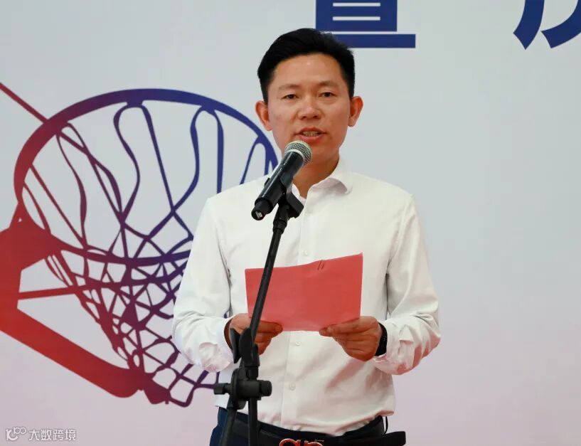 ▲新长工务段工会主席韩东昕宣布江苏区域篮球赛开赛
