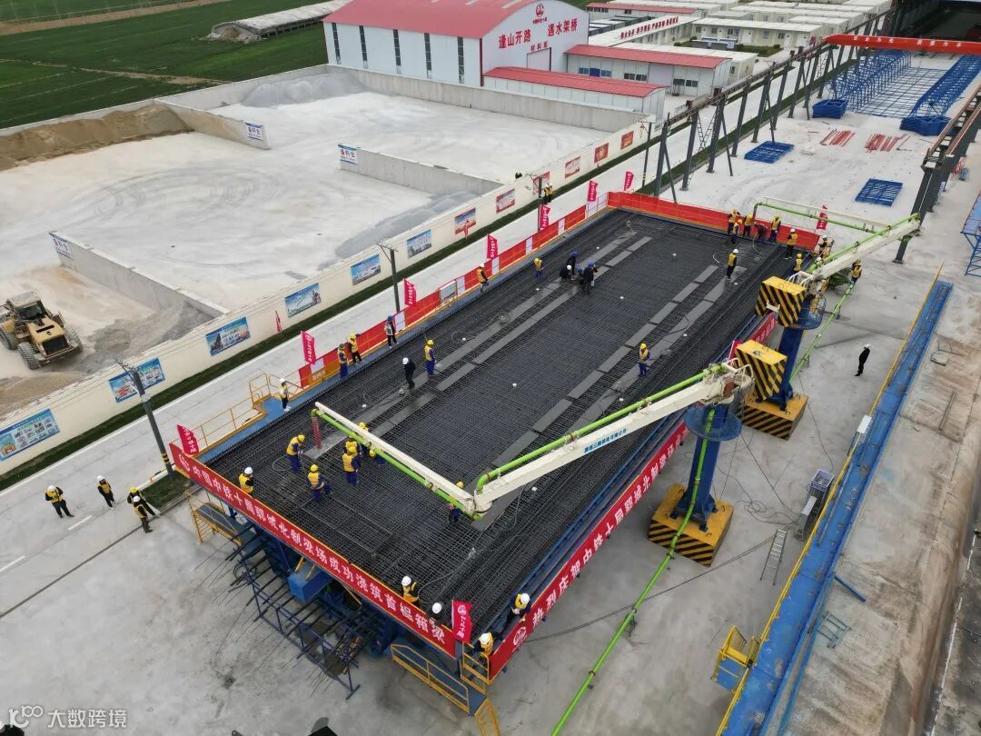 中铁十局负责施工的雄商高铁梁山至郓城段,线路全长26.843km,该标段由中国铁路济南局集团有限公司负责建设。此次浇筑的高铁箱梁长32.6米,重800多吨,共浇筑混凝土316立方米。