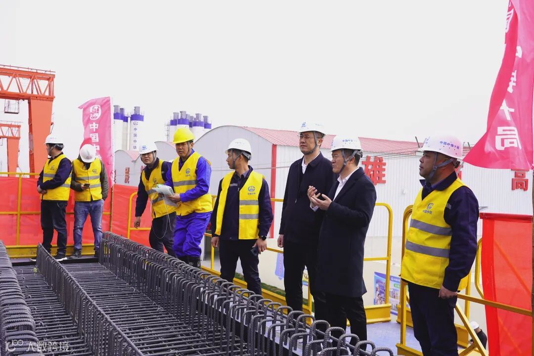 公司总经理朱俊峰,总经济师、副总经理田猛对浇筑现场进行了指导。并实地查看了现场钢筋自动加工设备、自动整平机等各类新工艺、新设备,对梁场各项工作给予了高度评价和肯定。
