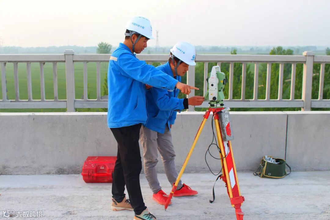 ▲菏兰二分部青年技术员正在进行测量放线工作