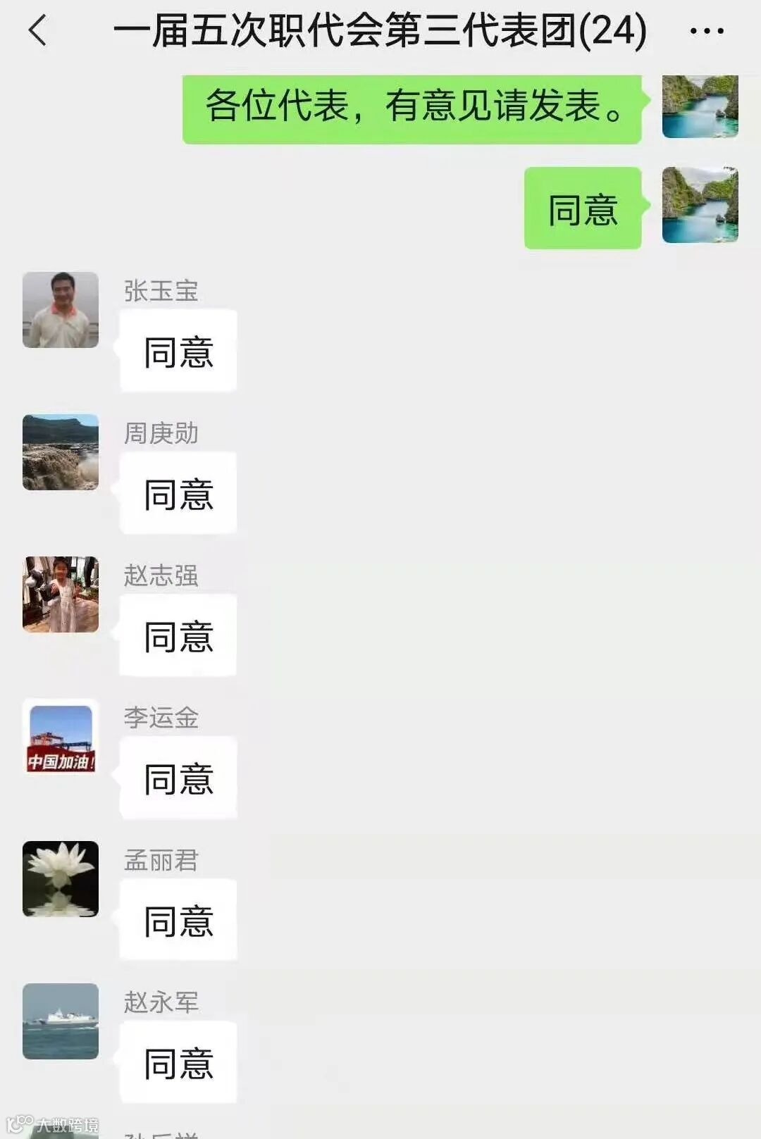 全体职工代表在微信群中听取审议了一届五次职代会筹备工作报告、一届四次职代会提案落实和本次职代会提案征集处理情况报告、2020年集体合同履行情况报告。