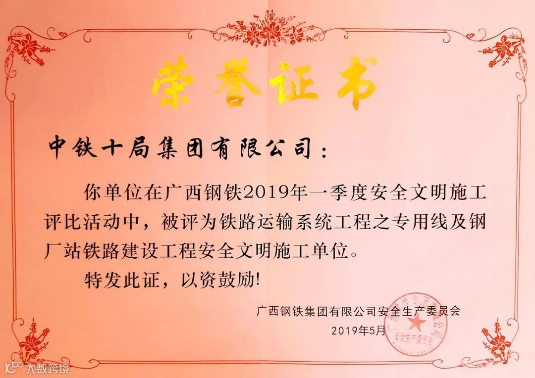 公司广西防城港项目部荣获广西钢铁集团安全文明施工单位称号