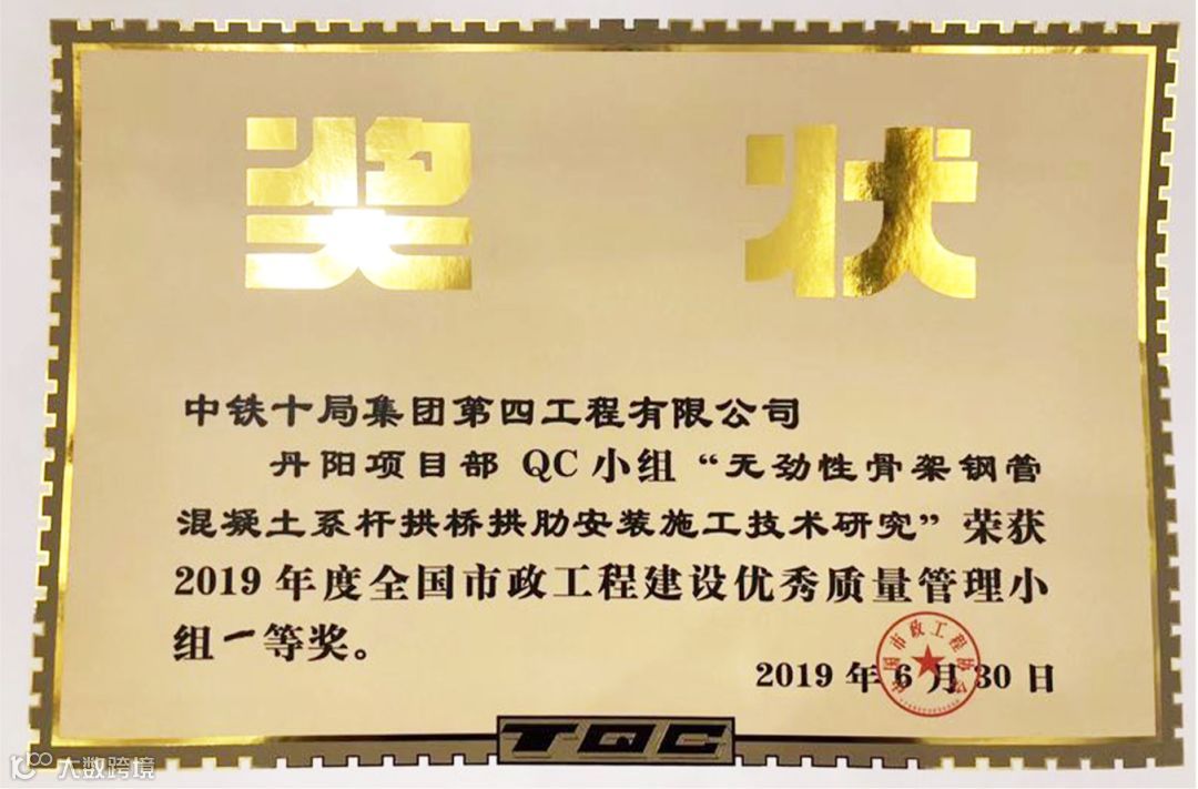 近日,中国市政工程协会组织举办的“2019年度全国市政工程建设优秀QC小组活动成果发布会”在福建厦门顺利闭幕。公司引领QC小组“箱梁梁场模块化建造技术的研发”、丹阳项目部QC小组“无劲性骨架钢管混凝土系杆拱桥拱肋安装施工技术研究” 成果,分别荣获全国市政工程建设优秀质量管理小组一等奖。