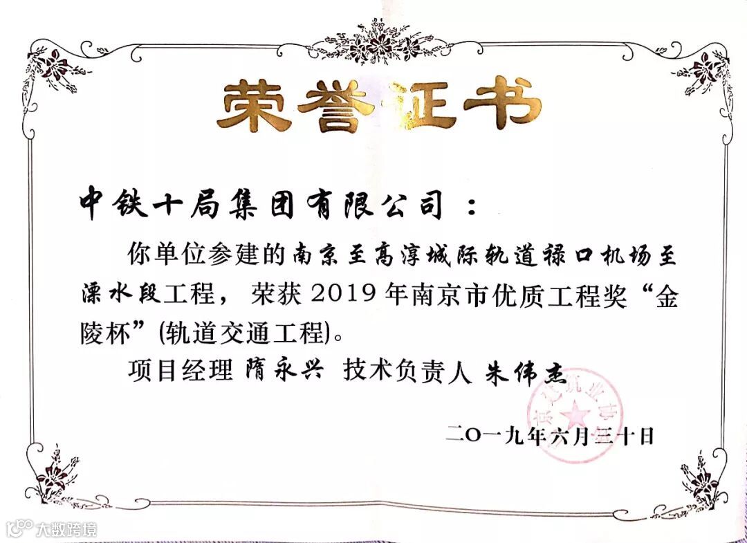 公司南京地铁宁溧线项目部喜获“金陵杯”南京市优质工程奖