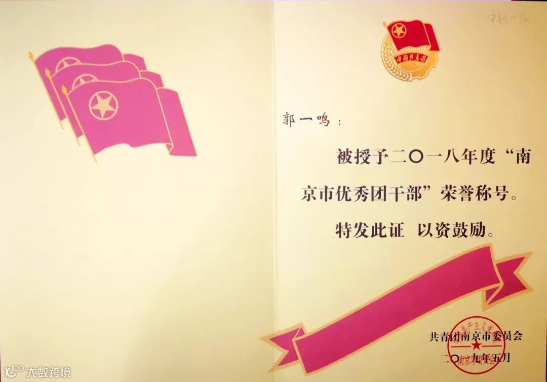 2019年5月,公司团委书记郭一鸣荣获南京市优秀团干部称号。