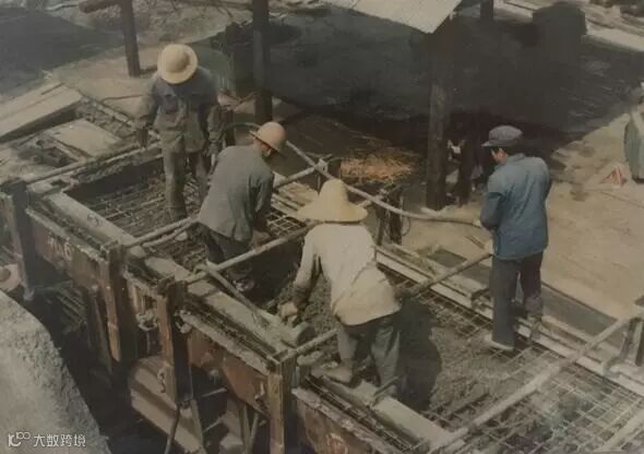 1988年的徐州桥梁厂,工人正在灌注混凝土