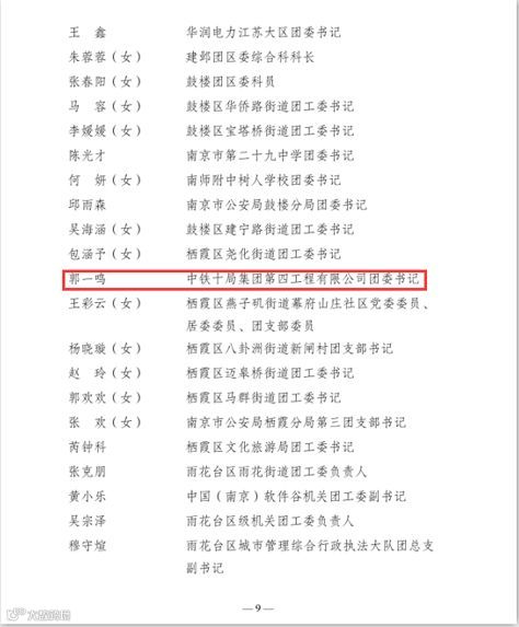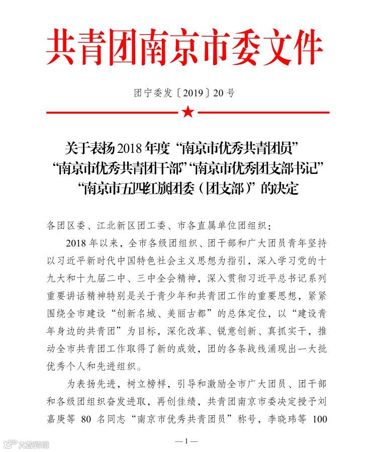 公司团委书记郭一鸣荣获2018年度“南京市优秀共青团干部”称号