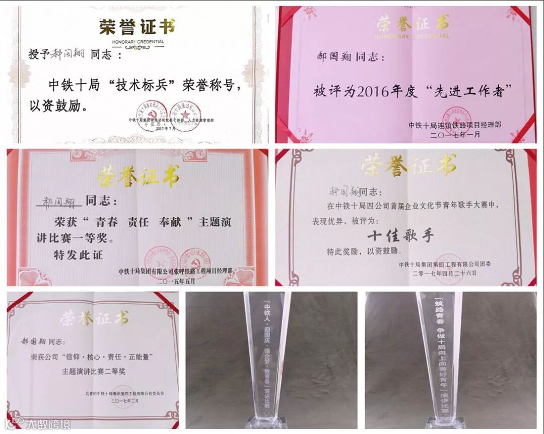 在工作之余他还主动参加公司组织的各项活动,先后获得四公司演讲比赛一等奖、中铁十局演讲比赛一等奖、四公司"十佳歌手"、中铁十局桥梁大型设备操作工技能竞赛第一名、中铁十局“技术标兵”荣誉称号等。在工作期间,一直坚持做到以下几个方面: