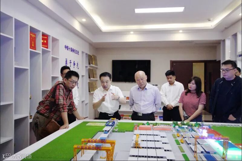 来访领导一行参观了公司企业文化展厅和企业文化建设成果展陈列室,以及公司重点产业—梁体制运架工程沙盘。