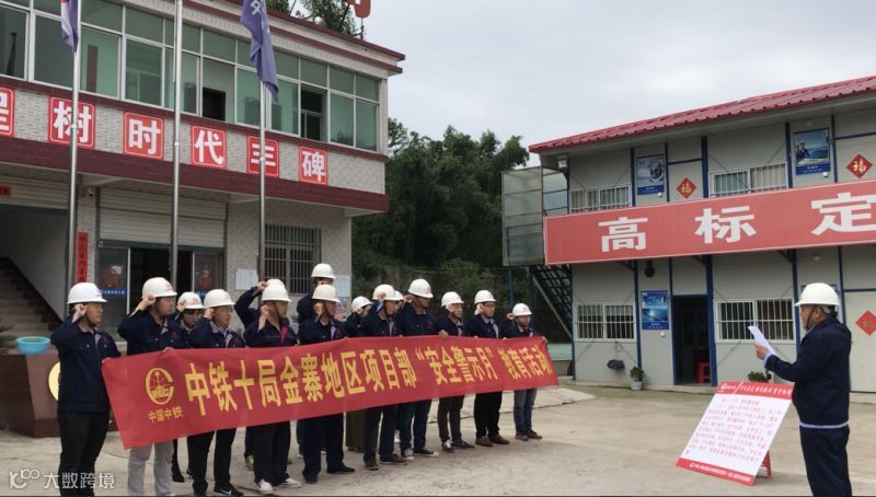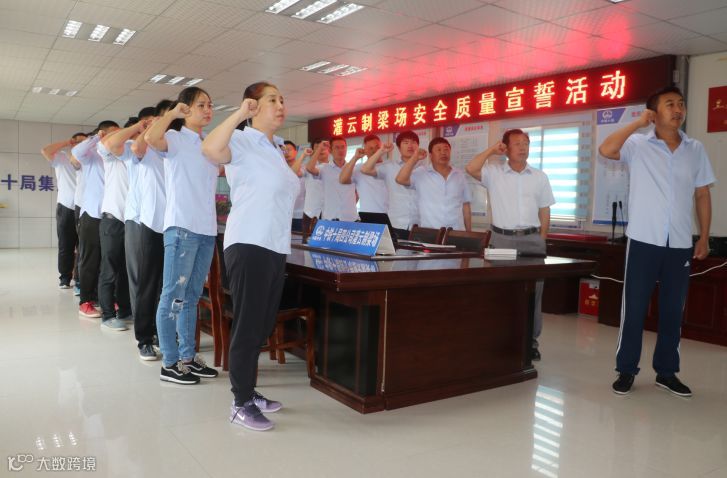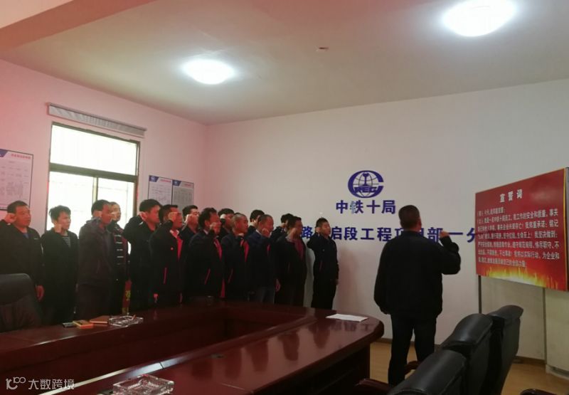 “今天,我郑重宣誓:我是一名中国中铁员工,我工作的安全和质量,关系到企业的发展和荣誉!我郑重承诺:忠诚企业、恪尽职守、珍爱生命、铸造精品!我坚决做到:遵守规章制度、遵守规范规程、遵守劳动纪律,不出事故、不出次品、不留隐患!我将以实际行动,确保企业生产安全、产品优质!”