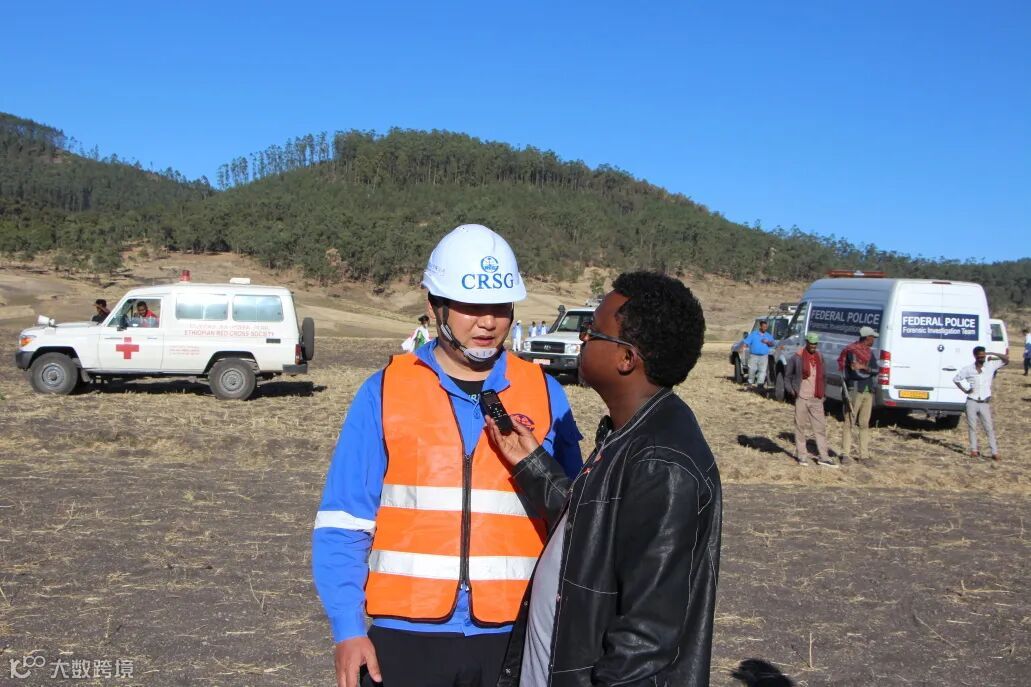 埃航空难救援组组长王光辉在救援现场接受当地电视台采访