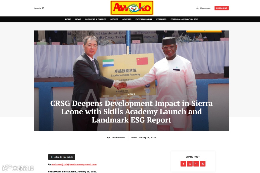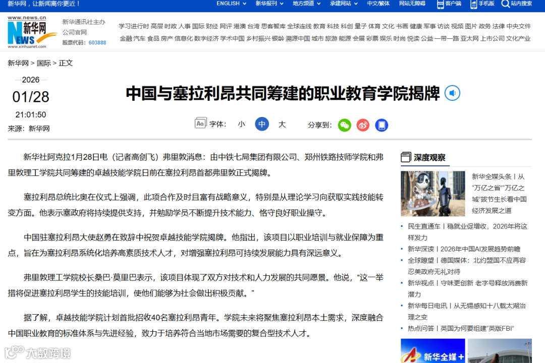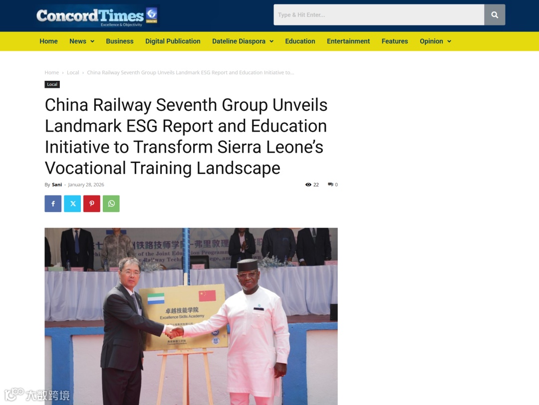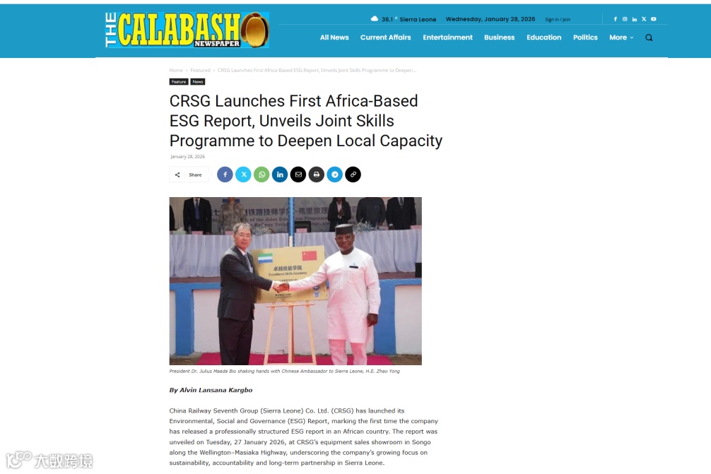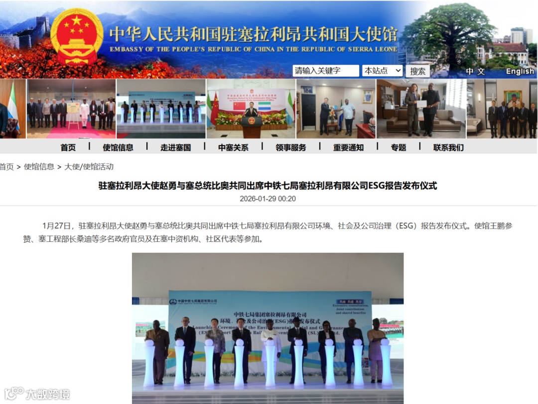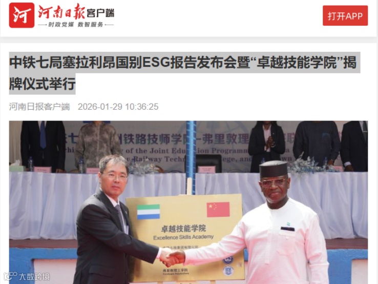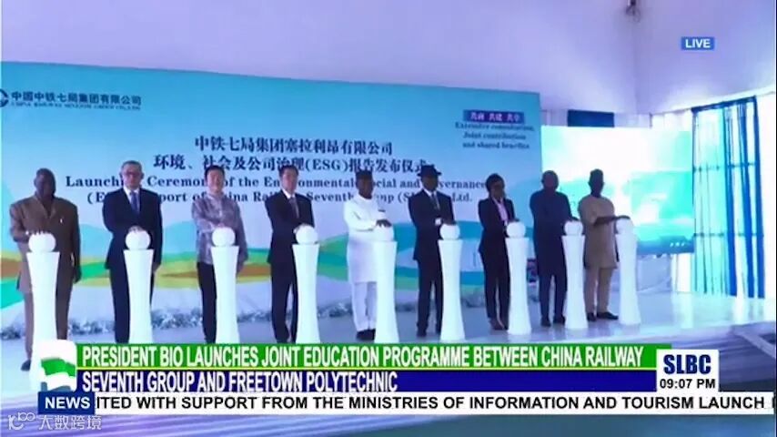 当地时间1月27日,中铁七局塞拉利昂国别ESG报告发布暨“卓越技能学院”揭牌仪式举行。塞拉利昂共和国总统朱利叶斯·马达·比奥阁下、中国驻塞拉利昂大使赵勇先生等多位中外嘉宾应邀出席仪式。