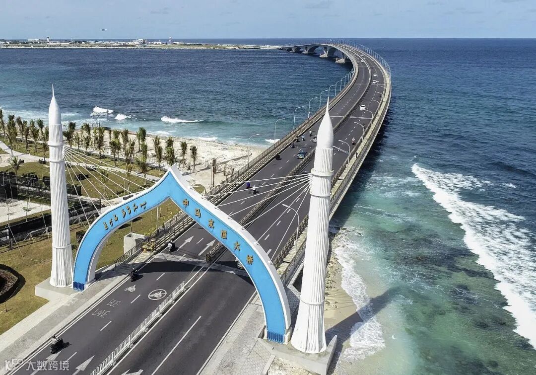 中马友谊大桥,连接马尔代夫首都马累、机场岛和胡鲁马累岛,于2018年建成通车。这是马尔代夫首座现代化桥梁,也是印度洋上的第一座跨海大桥和首座在珊瑚礁岩体上建造的大型跨海大桥。中国中铁供图