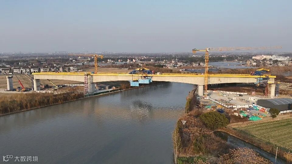 1月24日,通甬高铁跨吕冢港连续梁成功实现合龙,通甬高铁海盐特大桥跨吕冢港连续梁位于浙江省嘉兴市海盐县百步镇境内,连续梁全长237.8米,主跨112米,梁面宽度12.6米,设计为单箱单室变截面连续箱梁结构。面对困难和挑战,项目团队秉持“精细管理、科技赋能、安全优质”的施工理念,采用装配式全封闭防护体系,搭建全覆盖钢结构防护棚,确保航线正常通行。