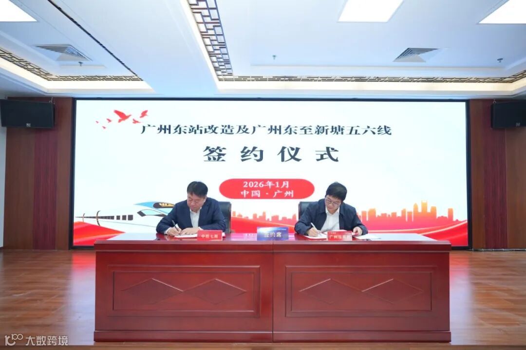 1月20日,广州东站改造及广州东至新塘五六线工作推进会及签约仪式在中铁七局1标项目部举行。中国铁路广州局集团广州工程建设指挥部指挥长郭飞,中铁七局党委书记、董事长师建军等13家单位主要负责人参加并出席签约仪式。