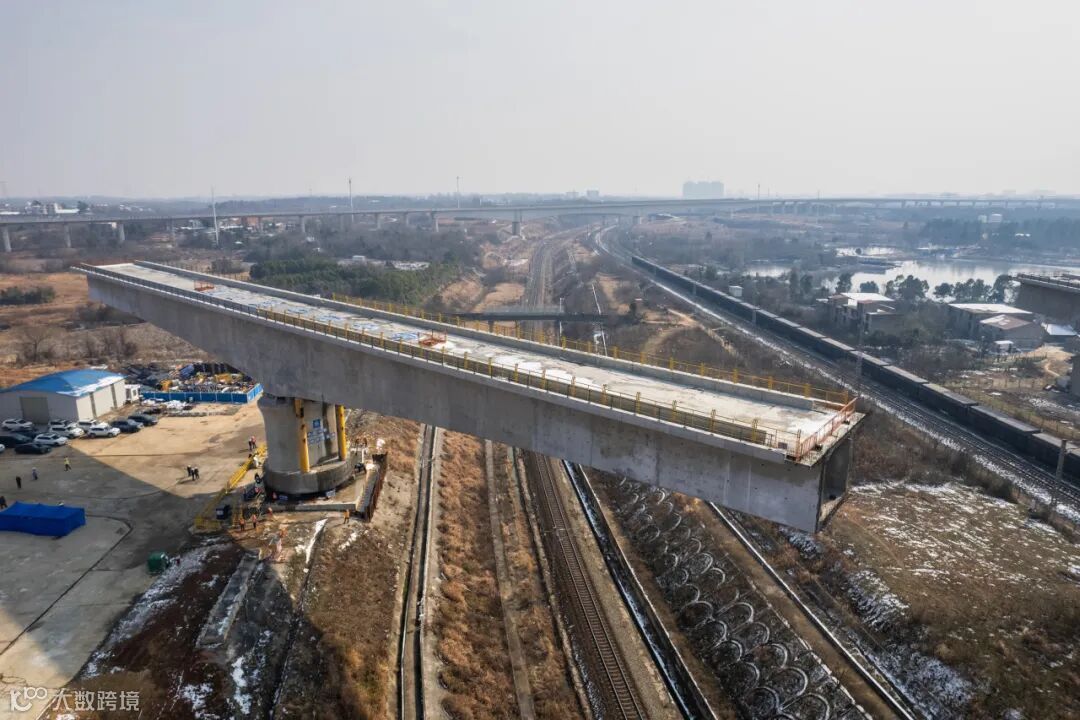 本次转体的T构梁体长133米,宽12.6米,重达1.2万吨,体量巨大。“这个重量相当于约9200辆普通家用轿车同时悬在半空,且施工环境极为敏感。”项目总工程师介绍道,“转体施工下方跨越的为京广铁路货线下行线,紧邻接触网高压线,梁底距离接触网的最小安全距离仅有数米,在如此狭窄的空间内驱动万吨庞然大物进行大幅度旋转,对结构的平衡控制和转动精度提出了极高要求。”在施工中,项目团队构建了一套全方位的智能化牵引控制系统,通过预埋的高精度传感器和球铰支撑体系,实时监测梁体的转速、应力变化和空间姿态,最终实现了毫米级的精准对接,确保了下方铁路运输的绝对安全。