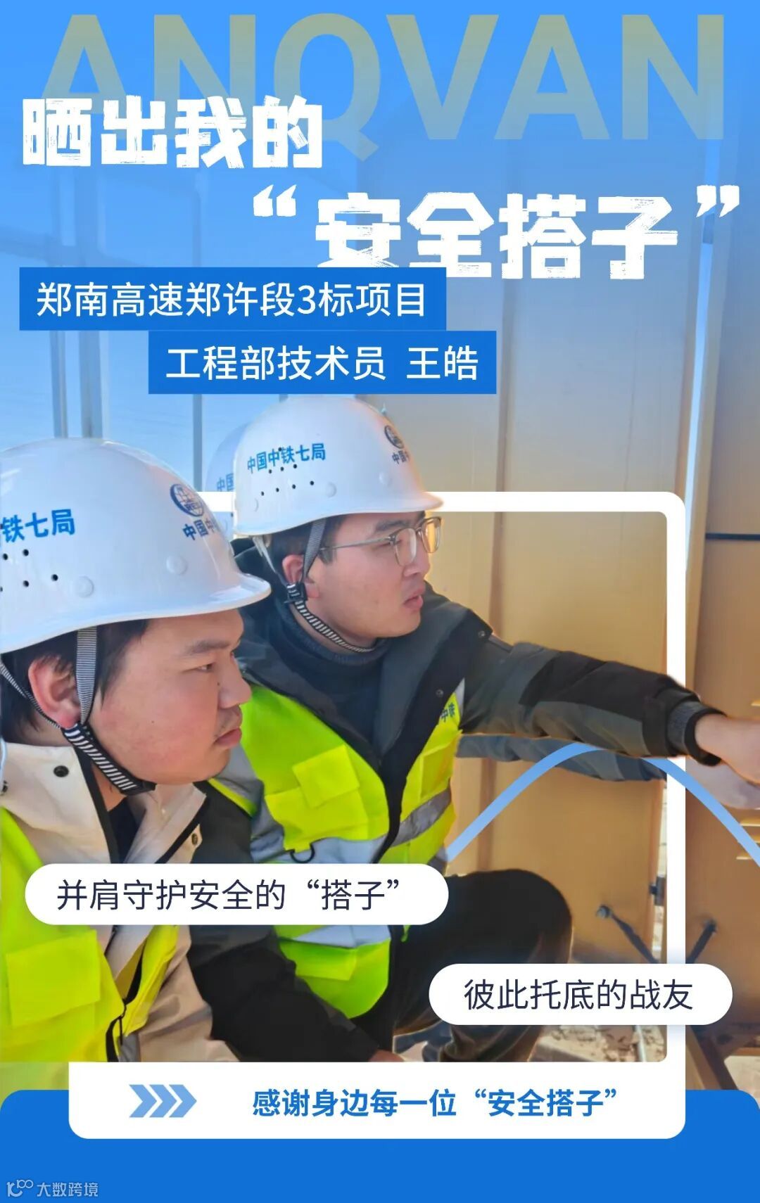 我的安全搭子张萌,是项目部一名安全主管,因长期值守在施工一线,双手和脸颊早已“黑化”,人送绰号“黑萌”。