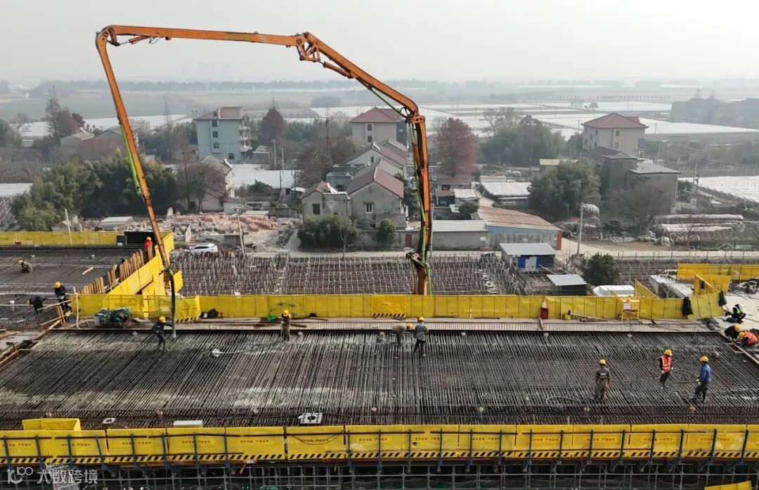 通甬高铁项目海盐特大桥159-162双线变三线连续梁顺利完成浇筑作业。