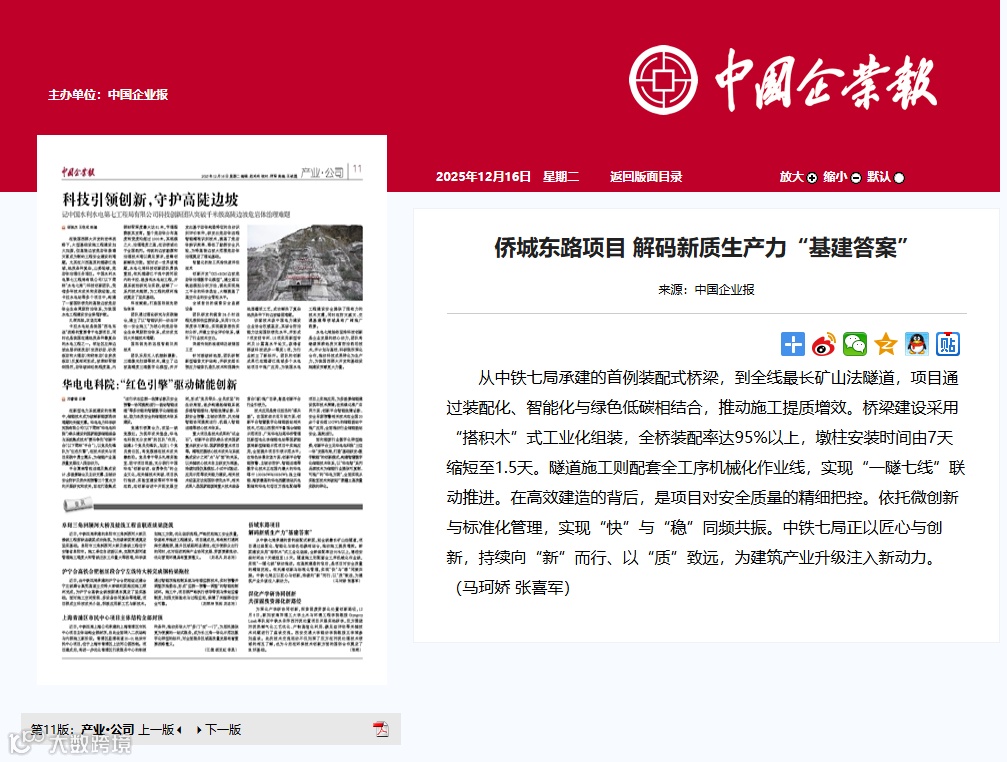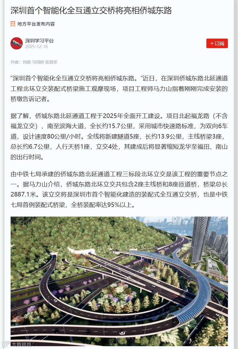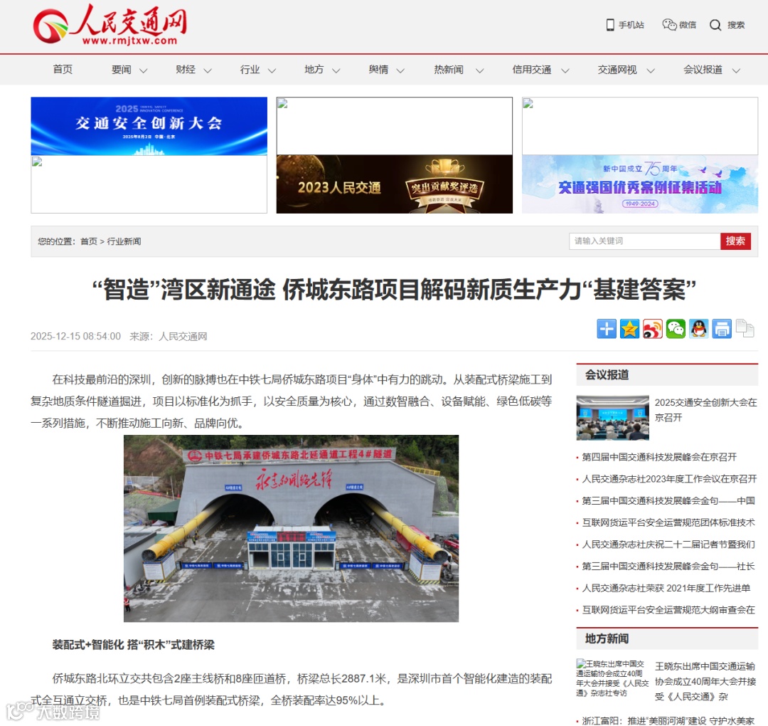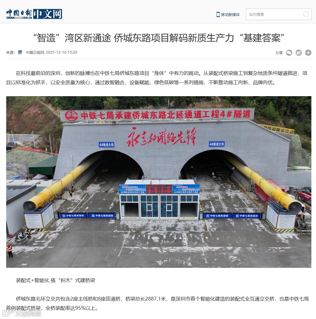 12月13日,多家媒体走进中铁七局深圳侨城东路项目施工现场,共同近距离观摩项目“装配式”桥梁施工和智能化建造情况。该项目创新施工技术融入工程建设受到了光明日报、科技日报、工人日报、学习强国、中国企业报、深圳商报等多家中央及省(市)各级媒体关注报道,充分彰显了企业优质建造的能力与品牌。
