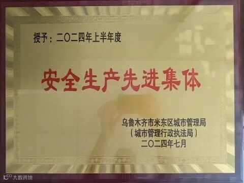 凭借在安全生产、企地共建等方面的卓越表现,项目部荣获米东区城市管理局“安全生产先进集体”“质量管理先进单位”等多项荣誉,并获地方社区“优秀共驻共建单位”称号,获得米东区人民政府、米东区城市管理局感谢信3封以及中铁七局党委授予的“优秀党支部”称号。
