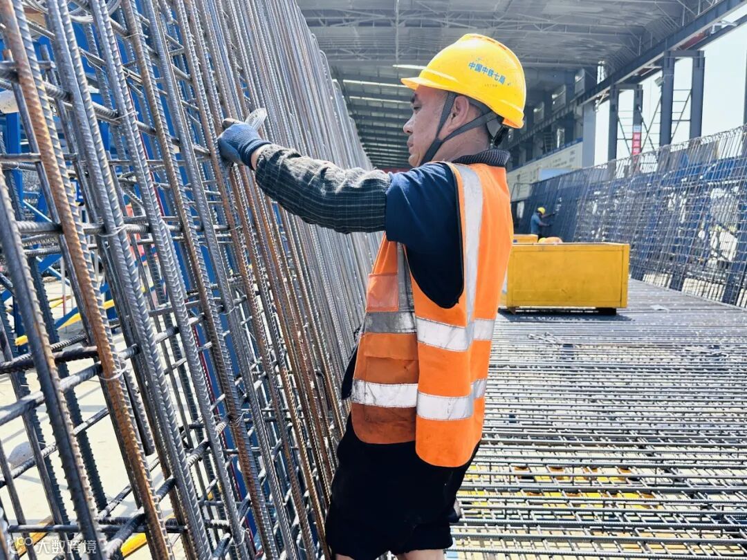 针对高温特点,项目部科学调整作业时间,实行"做两头、歇中间"的弹性工作制,避开正午高温时段。管理人员定时提醒工人轮换作业、科学补水,全力保障工程安全有序推进。