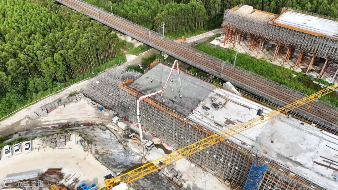 8月19日上午,永柳高速项目部四分部衡柳线跨线桥左幅9号墩转体现浇连续梁2号块顺利完成混凝土浇筑施工。