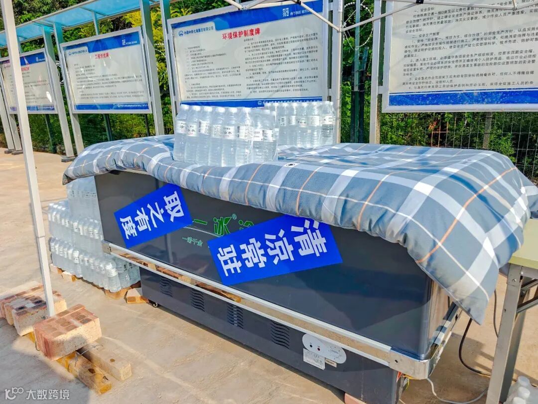 为迎战高温天气,项目部调整作息时间,避开上午10点到下午3点的高温时段户外施工作业,同时建设休息驿站,配备冰柜、冷饮,熬制绿豆汤,并为职工发放藿香正气液、仁丹、十滴水等防暑降温药品。场站边上的遮阳棚架,深基坑旁的通风机呼呼转动……项目部的“清凉驿站”,空调、冰柜、防暑药品一应俱全。整个标段1200余名工友,都可以在附近的“清凉驿站”避暑降温。