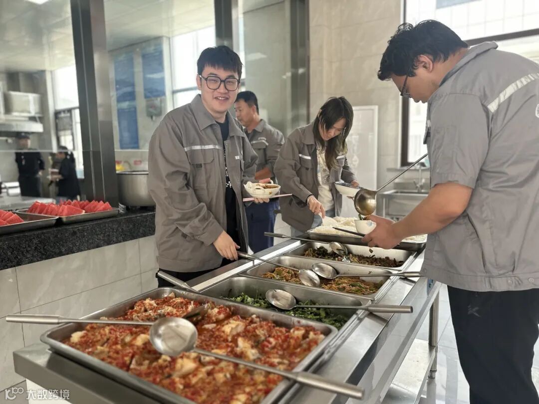 在职工食堂,为了让员工在炎炎夏日中依然能够吃得爽口、舒心,项目部精心调整菜品,特别推出了一系列开胃可口的小凉菜、西瓜、绿豆汤等多种特色美食。同时,设置员工专属冰箱,为职工提供免费的清凉饮料,用心用情用力做好夏季防暑降温服务保障工作,切实维护好员工夏季身心健康。