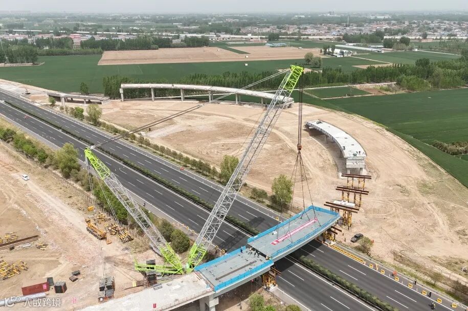 4月16日,沿黄高速武陟至济源段项目一标段二铺营枢纽A匝道2号桥跨高速段钢箱梁顺利吊装完成,这是沿黄高速全线跨郑云高速整吊最长、最重的钢箱梁。此次吊装的成功,为后续工程的顺利推进和项目今年顺利建成通车奠定了坚实基础。