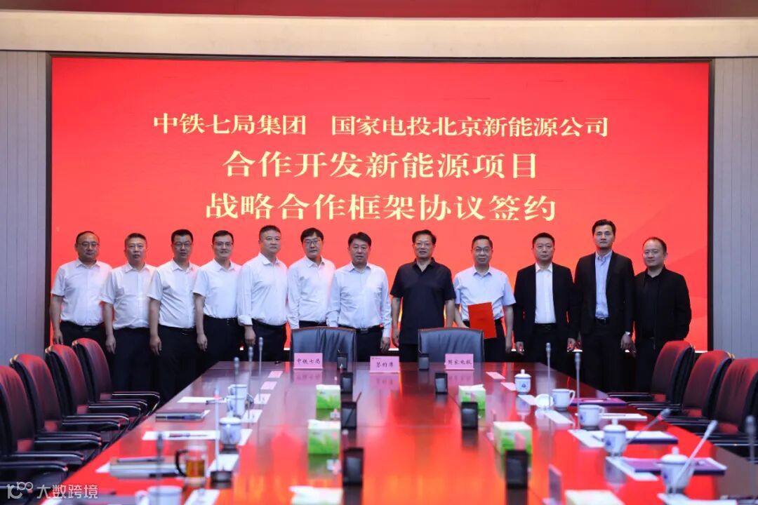 中铁七局副总经理詹浩伟,经营开发部、投资管理部及电务公司负责人,国家电投北京新能源公司相关人员参加签约仪式。