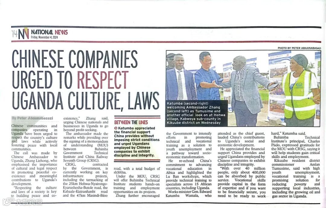 为中铁七局在乌干达发展夯实了民心基础
