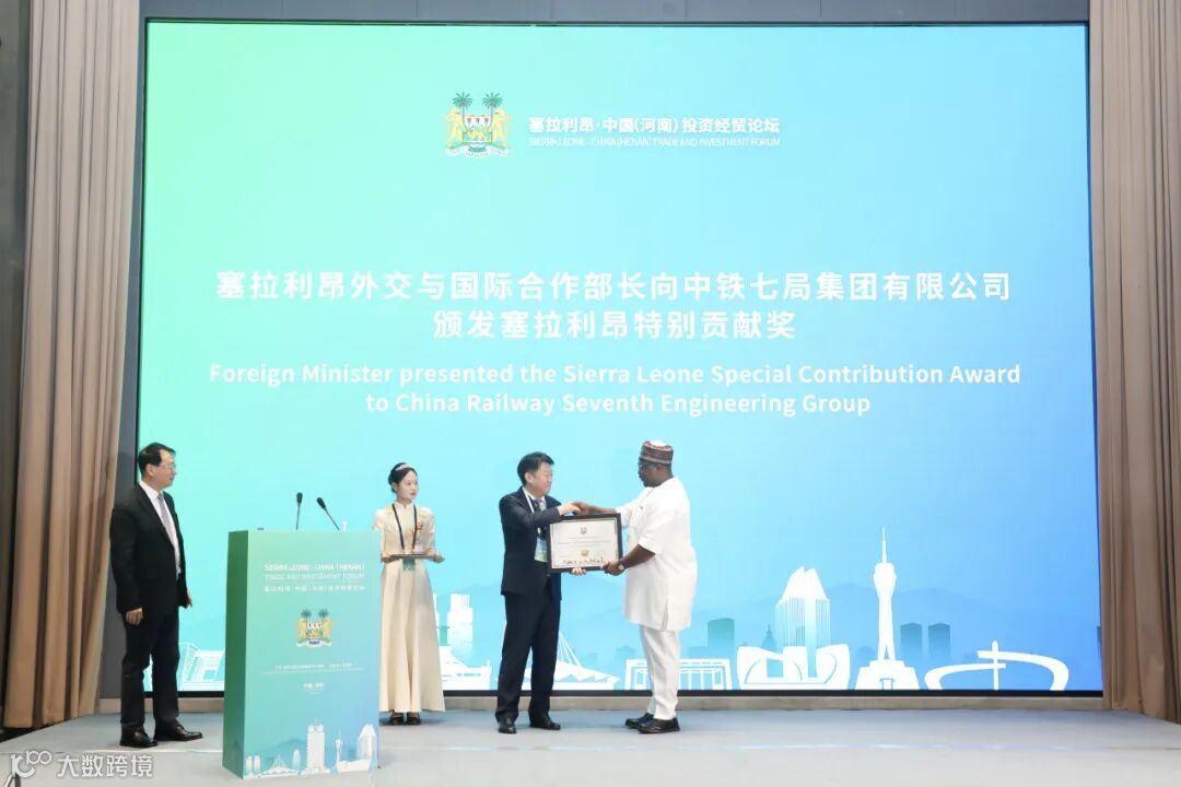 会上,塞方部长代表团向中铁七局颁发“塞拉利昂特别贡献奖”,感谢中铁七局多年来在塞拉利昂基础设施建设、经贸发展、疫情抗击、抢险救灾等方面作出的突出贡献。