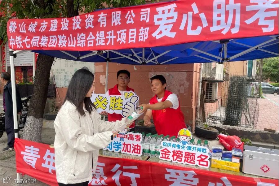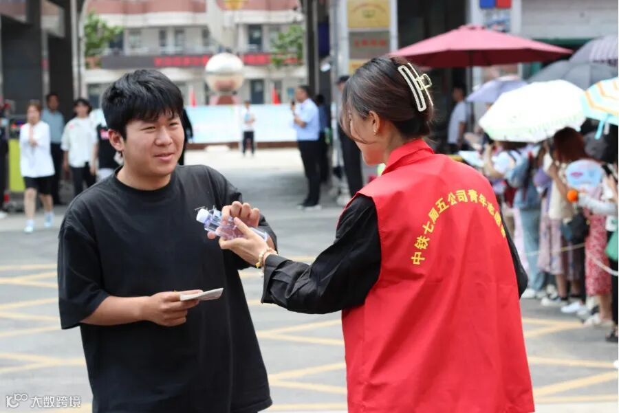 五公司在郑州、泉州、哈尔滨等地设立多个爱心助考服务台和加油站,为考生和送考家长提供了遮阳棚、椅子、饮用水等用品,并提醒来往路人遵守秩序,为考生们营造安静有序的外部环境。