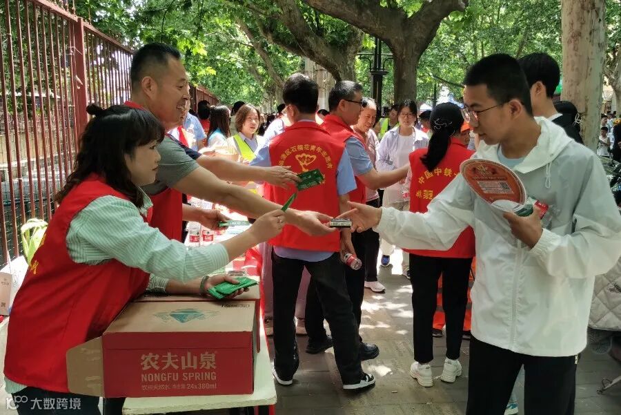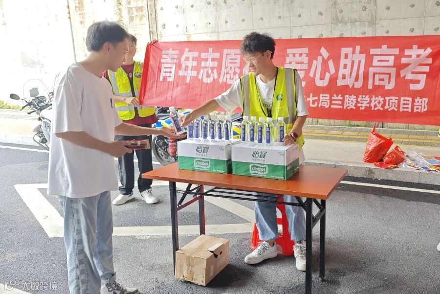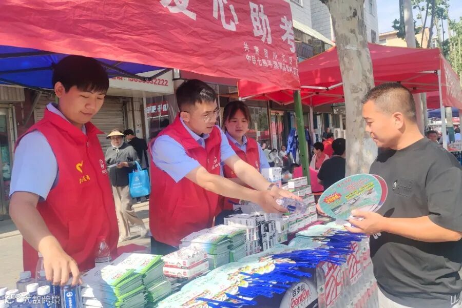 南京公司组织平漯周高铁项目与川汇区团委携手合作,在周口市建设路考场外设置志愿者服务站,为考生提供矿泉水、考试用品、医务急救等物品,助力学子圆梦。