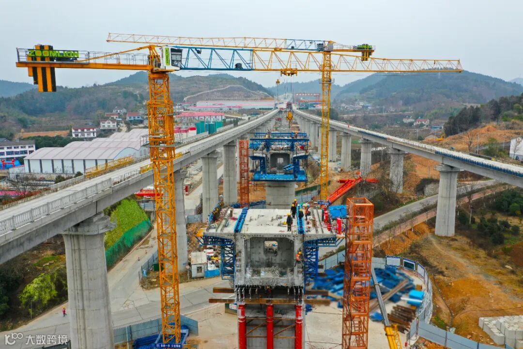 沪渝蓉高铁秦家河大桥右幅道岔连续梁顺利合龙