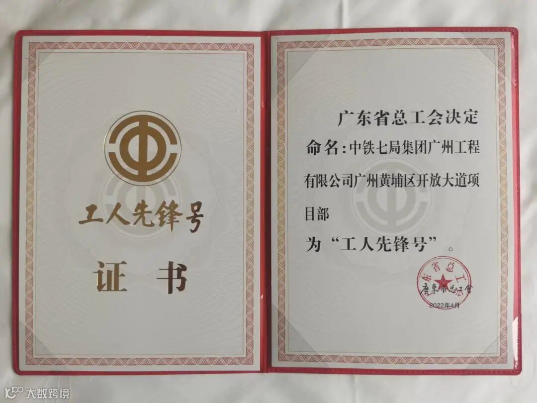 4月28日,在广东省庆祝“五一”国际劳动节暨劳模表彰大会上,广东省总工会表彰了2022年广东省五一劳动奖等集体及个人,中铁七局广州公司广州黄埔区开放大道项目部被广东省总工会授予广东省“工人先锋号”称号。