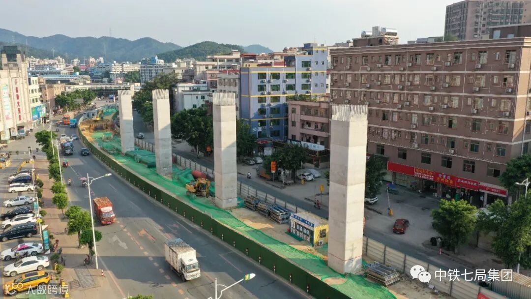 中铁七局武汉公司承建了花莞高速的第9和第13标段,共计7.6公里的线路施工任务。其中第13标段3处跨广园快速路,2处跨珠江河道仙村涌,共有桥梁5座,桥梁工程占比95%,全为高架桥梁。第9标段主要承担北竹公路跨线桥、广汕公路跨线桥等8座桥梁以及路基、涵洞等施工任务。