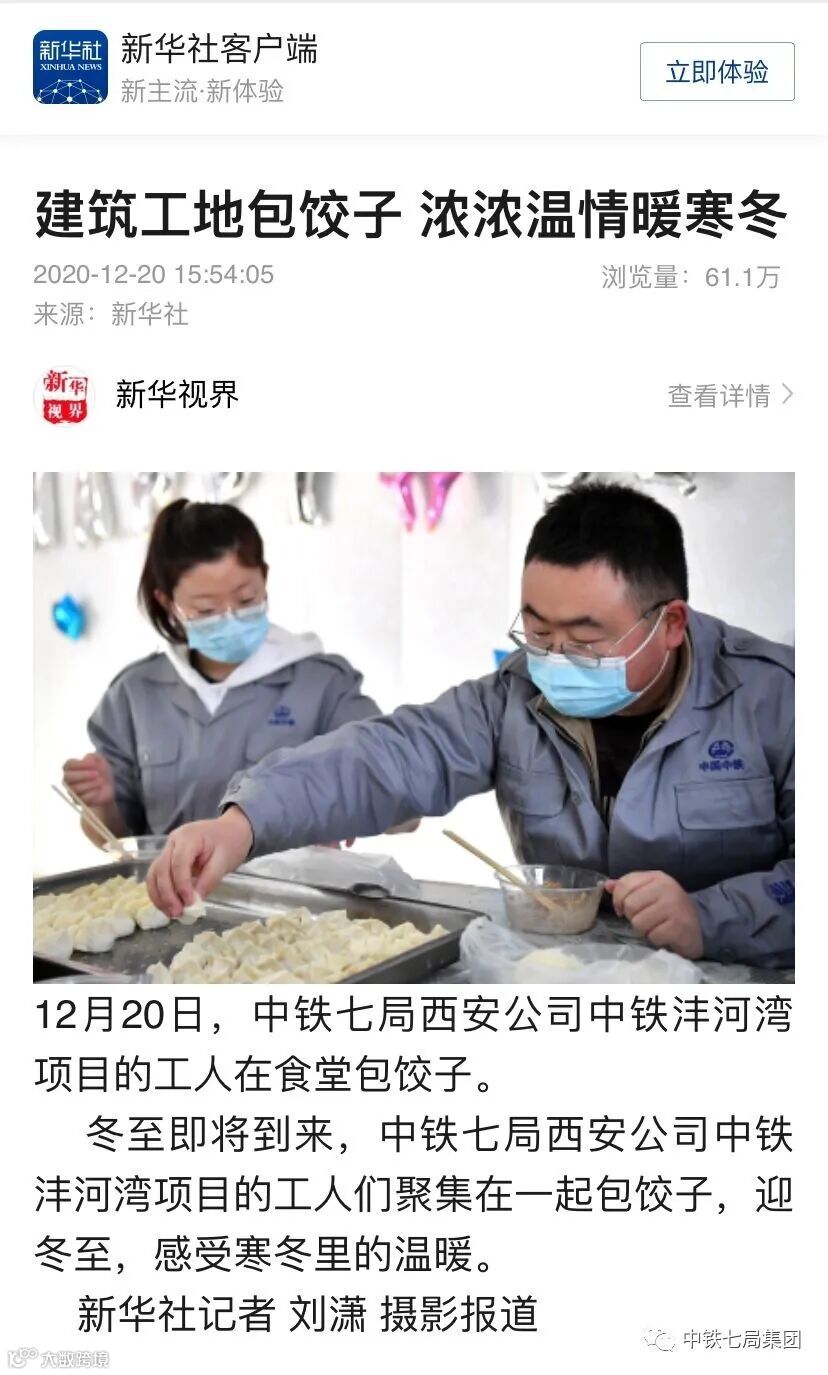 冬至即将到来,中铁七局西安公司中铁沣河湾项目的工人们聚集在一起包饺子,迎冬至,感受寒冬里的温暖。