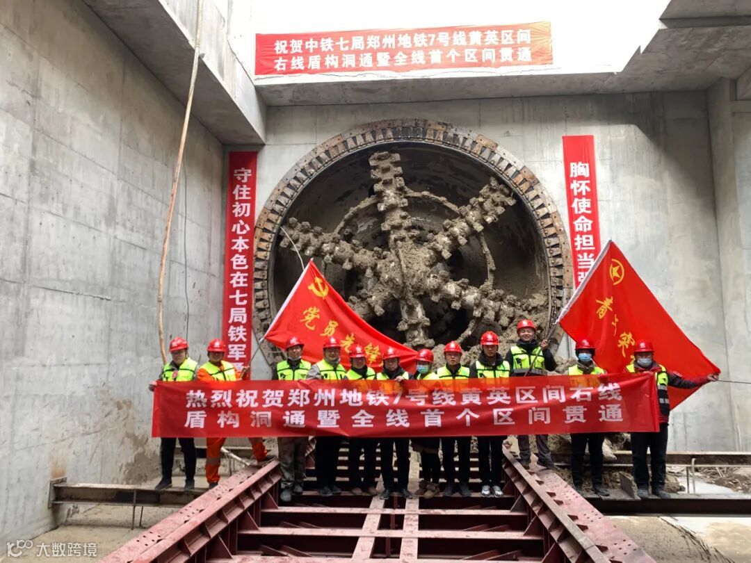 1月10日上午,郑州市轨道交通7号线一期02工区英才街站盾构接收井内,随着隆隆的轰鸣声,转动着巨大刀盘的“卓越2号”盾构机破壁而出,由郑州公司承建的郑州地铁7号线一期黄河迎宾馆站至英才街站区间右线顺利洞通,成为7号线一期工程首个双线贯通的盾构区间。郑州地铁7号线一期全长26.81千米,共计建设20个车站,途径郑州市三大区,惠济区、金水区与二七区,起点东赵站,终点侯寨站。其中郑州公司承建的郑州地铁7号线一期02工区施工生产任务线路全长4.615千米,包含2座车站3个区间,本次贯通的黄河迎宾馆站至英才街站盾构区间分为左右线区间,左线区间长751米,于2020年8月30日始发12月18日贯通;此次贯通的右线区间长758米,于2020年9月30日始发。