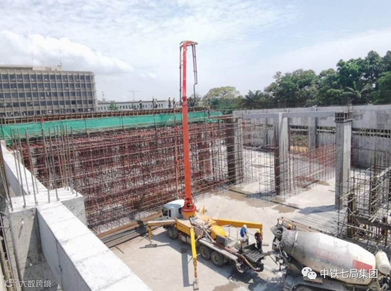 中铁七局三公司承建的刚果(金)中央银行大楼项目首片梁浇筑完成
