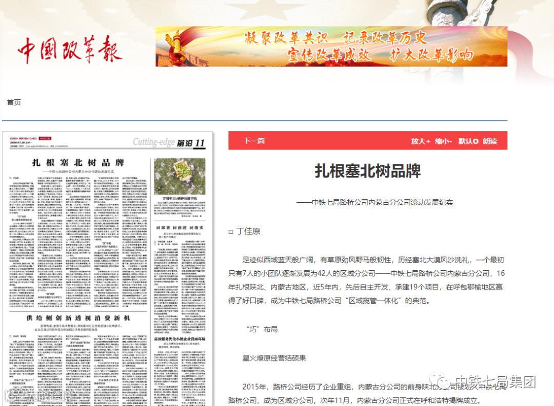 2015年,中国中铁七局路桥公司经历了企业重组,内蒙古分公司的前身陕北分公司被划入路桥公司,成为区域分公司,次年11月,内蒙古分公司正式在呼和浩特揭牌成立。