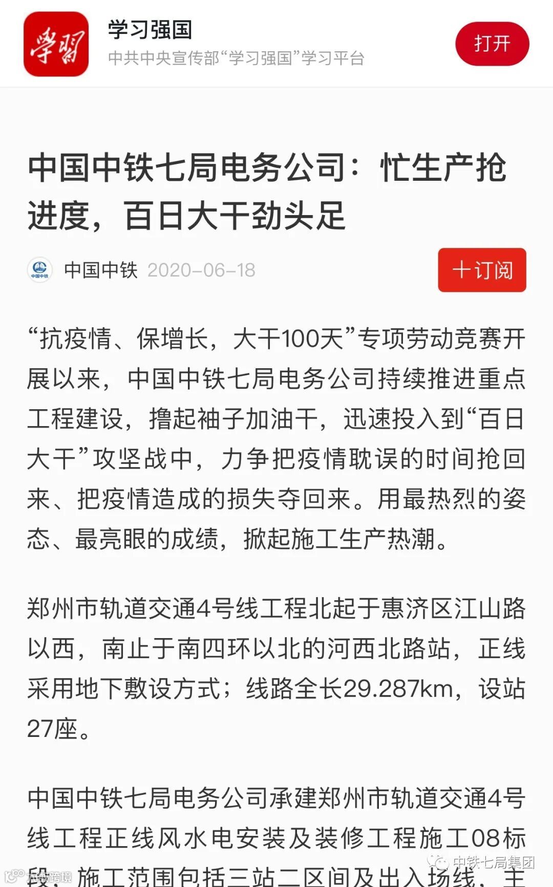 “抗疫情、保增长,大干100天”专项劳动竞赛开展以来,中国中铁七局电务公司持续推进重点工程建设,撸起袖子加油干,迅速投入到“百日大干”攻坚战中,力争把疫情耽误的时间抢回来、把疫情造成的损失夺回来。用最热烈的姿态、最亮眼的成绩,掀起施工生产热潮。