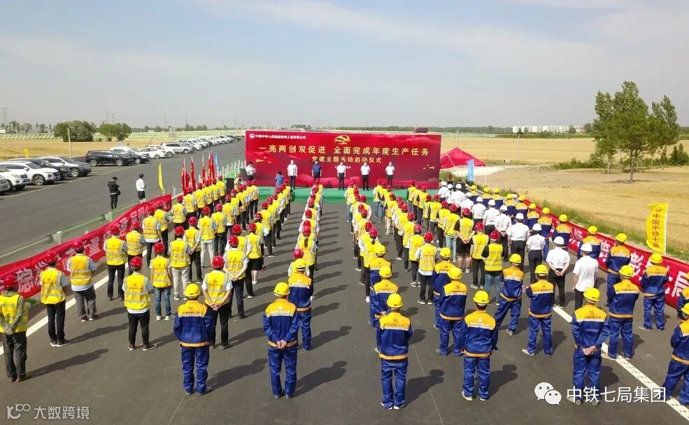 5月28日,中铁七局郑州公司党委“一亮两创双促进,全面完成年度生产任务”党建主题活动启动仪式在国道107新乡境改建工程项目部施工现场举行。一亮,即亮出党员身份;两创,即创党员先锋岗、创红旗责任区;双促进,即促进党员先锋模范带头作用有效发挥、促进党组织战斗堡垒作用有效发挥。