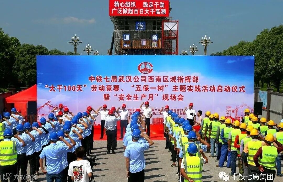 5月30日,中铁七局武汉公司西南区域指挥部“大干100天”劳动竞赛、“五保一树”主题实践活动启动仪式暨“安全生产月”现场会在该公司重庆地铁4号线项目部施工现场顺利召开。活动宣读了公司“大干一百天”通知、“五保一树”活动方案,为项目党员先锋队、青年突击队及工人先锋号代表授旗,签订了“大干百天”暨“安全生产月”责任状。