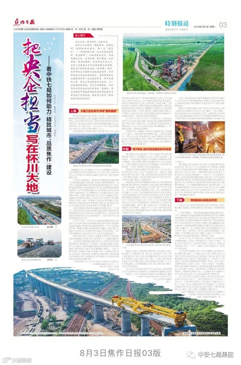 在怀川儿女助力“精致城市、品质焦作”建设的新征程中,有一支“国家队”——中国中铁七局。这支享誉国内外的“央企铁军”,以助力民族复兴、河南发展为己任,大力发扬“勇于超越,追求卓越”的企业精神,在焦作这片热土上,承担了总投资上百亿元的新建太焦铁路、国道207焦温快速通道(西环路)项目、焦作中铁太行国际生态城建设项目、焦作市白马门河综合治理项目、焦作市西经大道建设项目等一大批国家和省、市重点建设工程。他们以央企的责任与担当,以一流的质量和业绩,干出了别样精彩,为焦作在中原更加出彩中出重彩、更精彩,争当河南在中部地区崛起中奋勇争先的主力军作出了重要贡献,被焦作人誉为“特别能战斗的央企风范”。