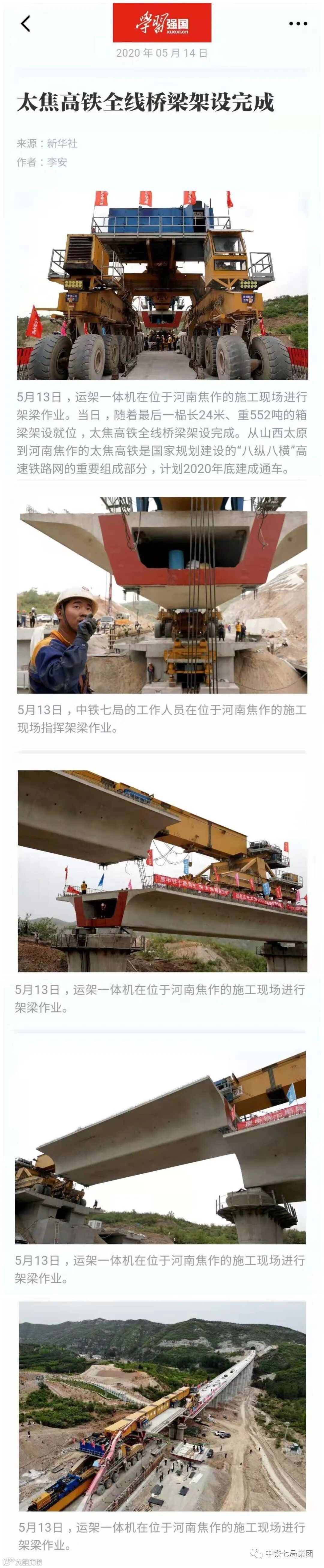 近日,中铁七局抢抓工期,大干快上,有序推进重点工程建设,积极展现央企担当,持续受到中央电视台、工人日报、人民铁道报、学习强国等主流媒体的持续关注和报道。