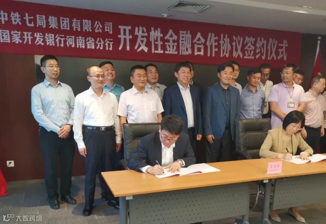中铁七局总会计师王恺、国家开发银行河南省分行副行长刘建梅参加座谈并代表双方签订合作协议,师建军与傅小东鉴签,中铁七局总经理助理曹洪超、副总会计师何军等参加签约仪式。