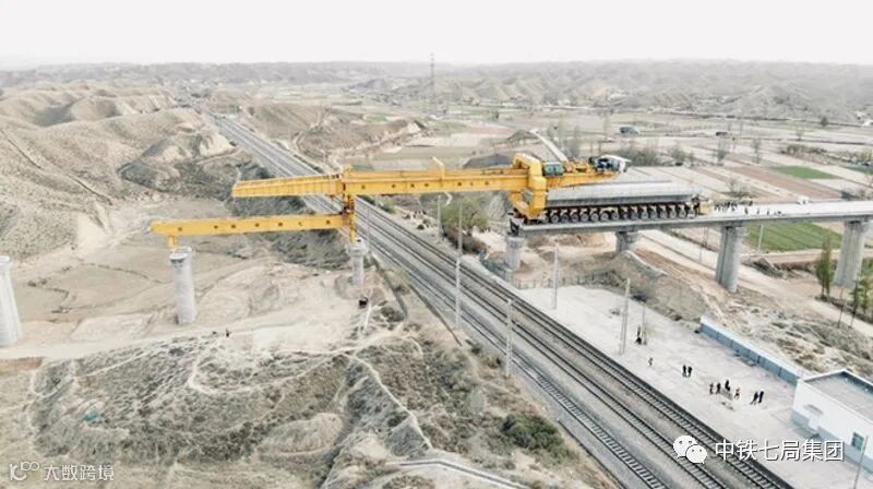 丰水特大桥位于丰水村境内,全长935.3米,与既有的包兰铁路斜交76°。在架设第7孔箱梁时,架桥机需横跨包兰铁路,上跨丰水村车站1、2、3股道,施工安全风险高、天窗时间紧。