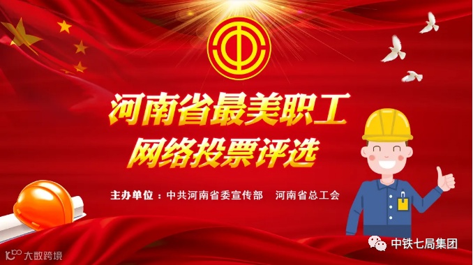 经过前期民主推荐和评审委员会初审,中铁七局海外公司王光辉成功入围“河南省最美职工”候选人。现“最美职工”宣传选树活动已启动网络评选环节,请大家通过工人日报客户端、中工网河南新闻、河南省总工会、河南职工服务平台(豫工惠APP)同步进行候选人先进事迹展播、网络投票方式,积极主动为王光辉(编号60)投票!