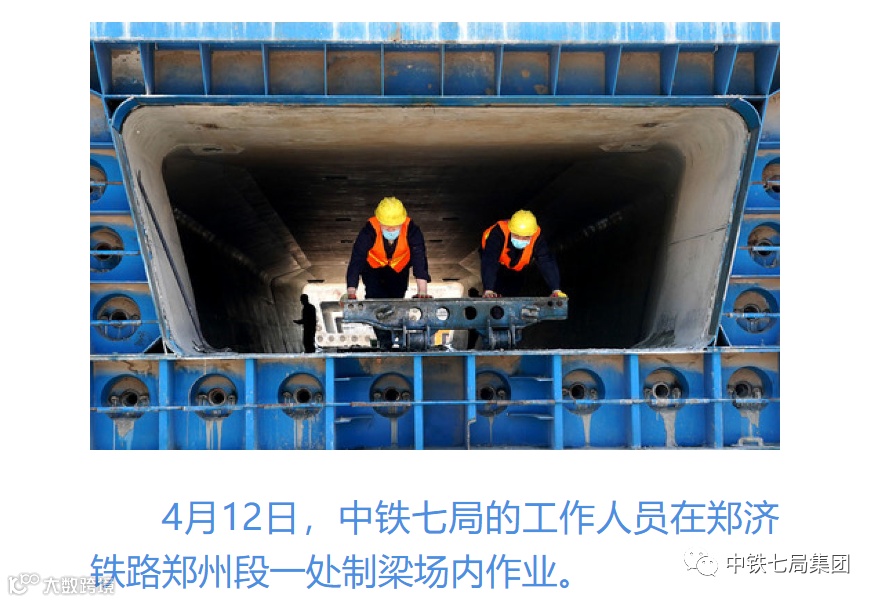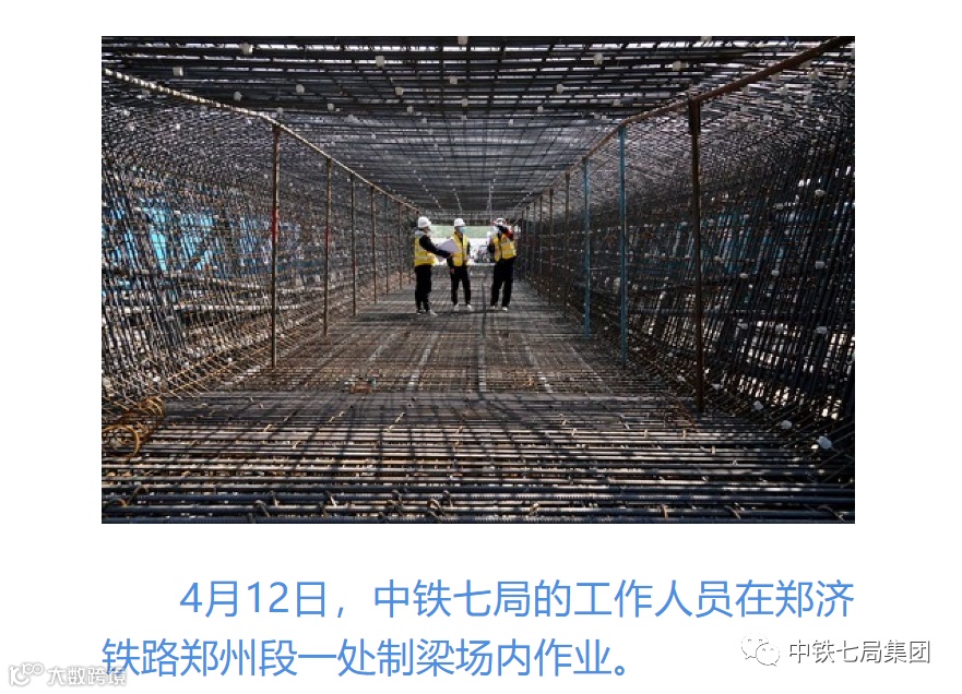 4月12日,中铁七局的工作人员在郑济铁路郑州段一处制梁场内作业。